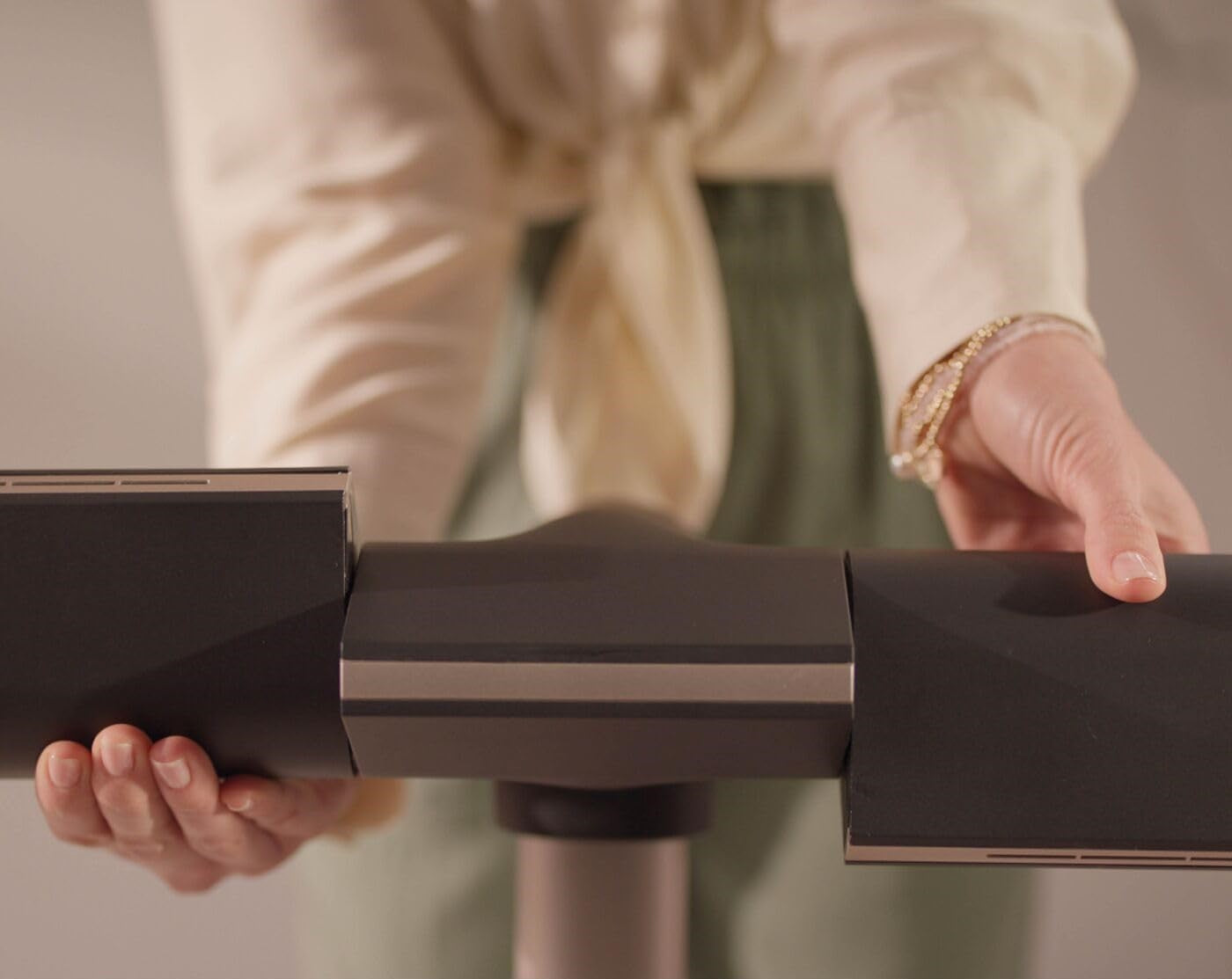Passa facilmente tra modalità verticale e orizzontale, con la possibilità di regolare le bocchette d’aria in due direzioni contemporaneamente. L’oscillazione arriva fino a 180° e l’altezza è completamente regolabile in base allo spazio disponibile.